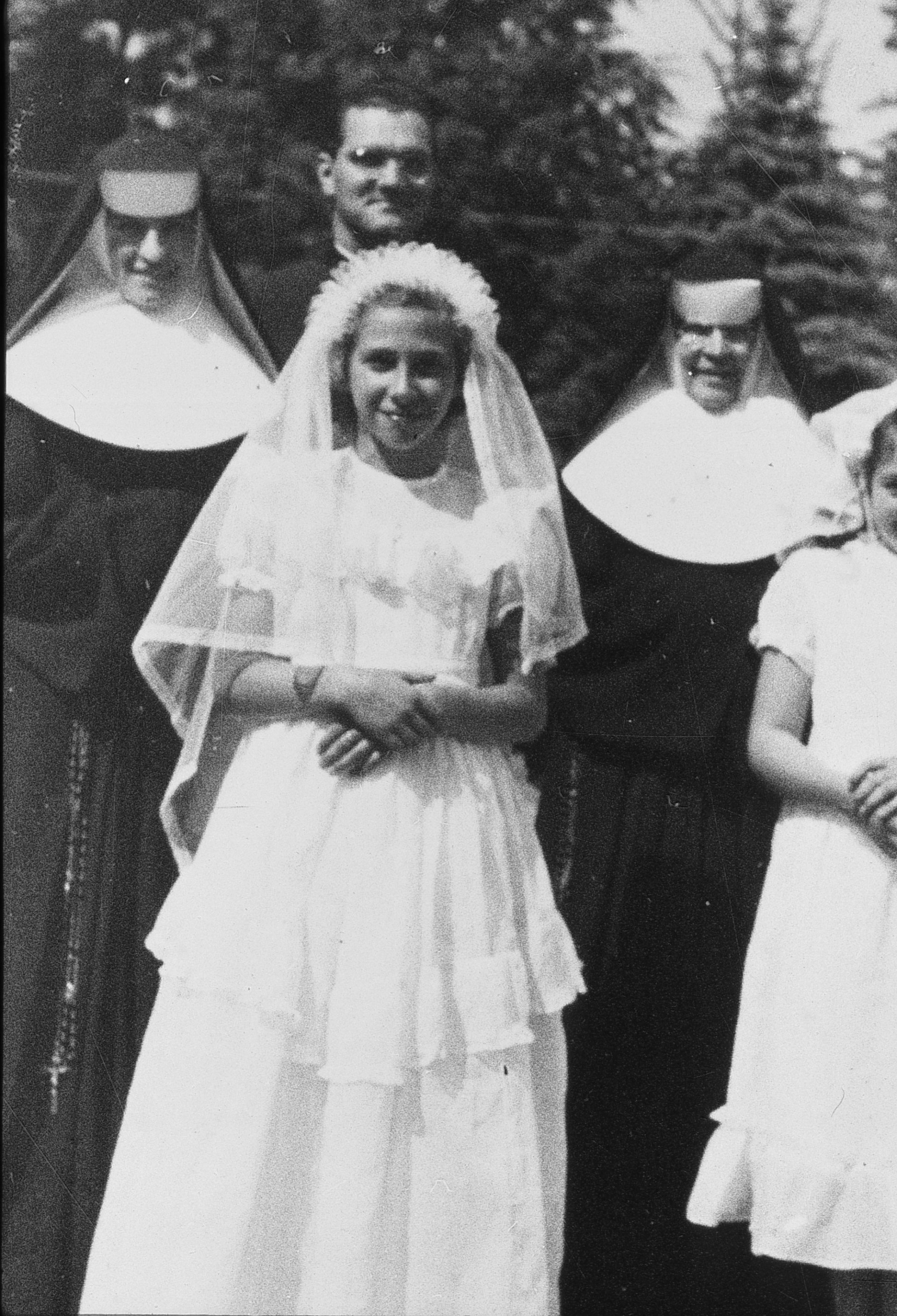 Fr. Hensel with nuns and First Communion students, circa 1950
